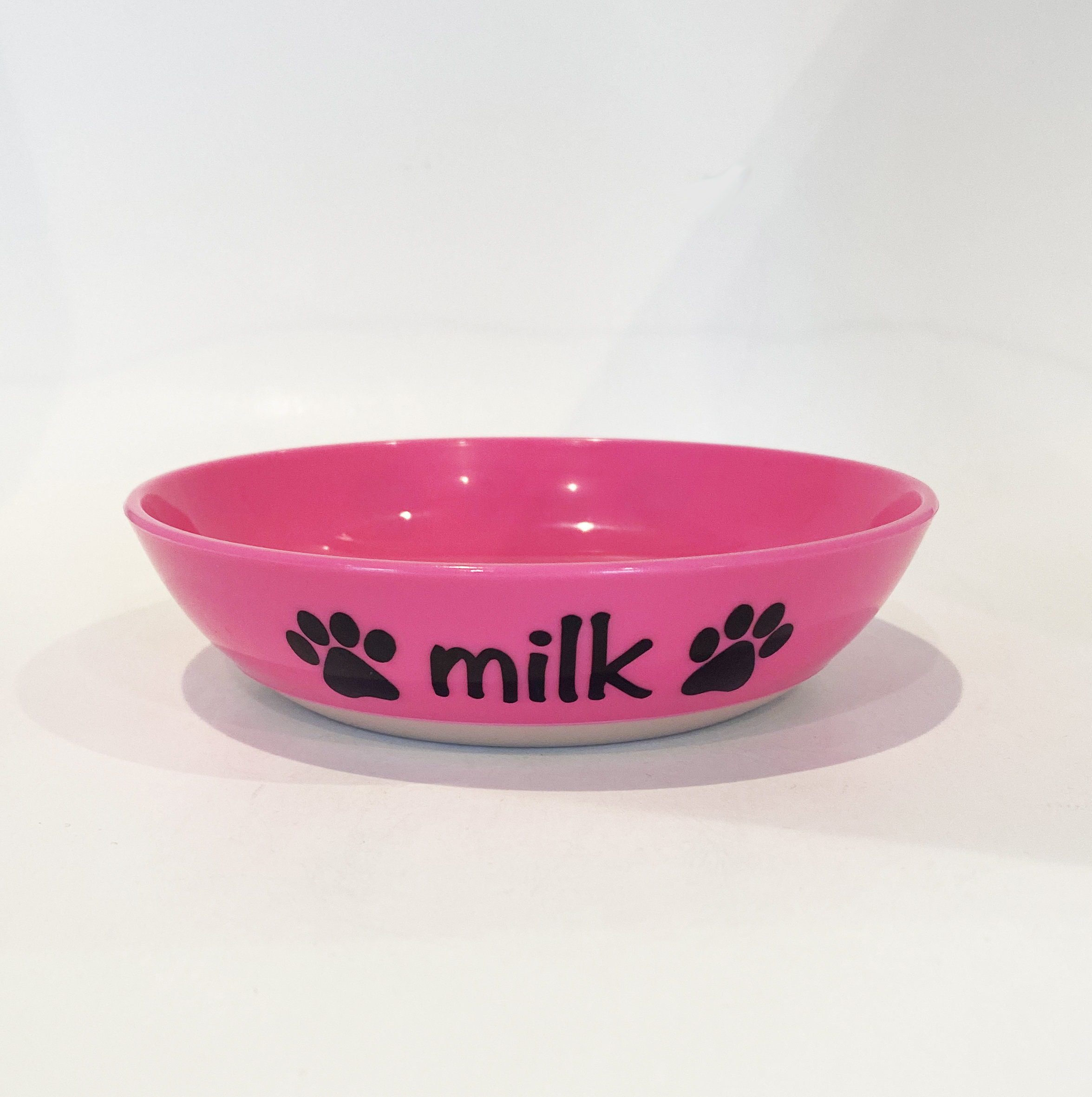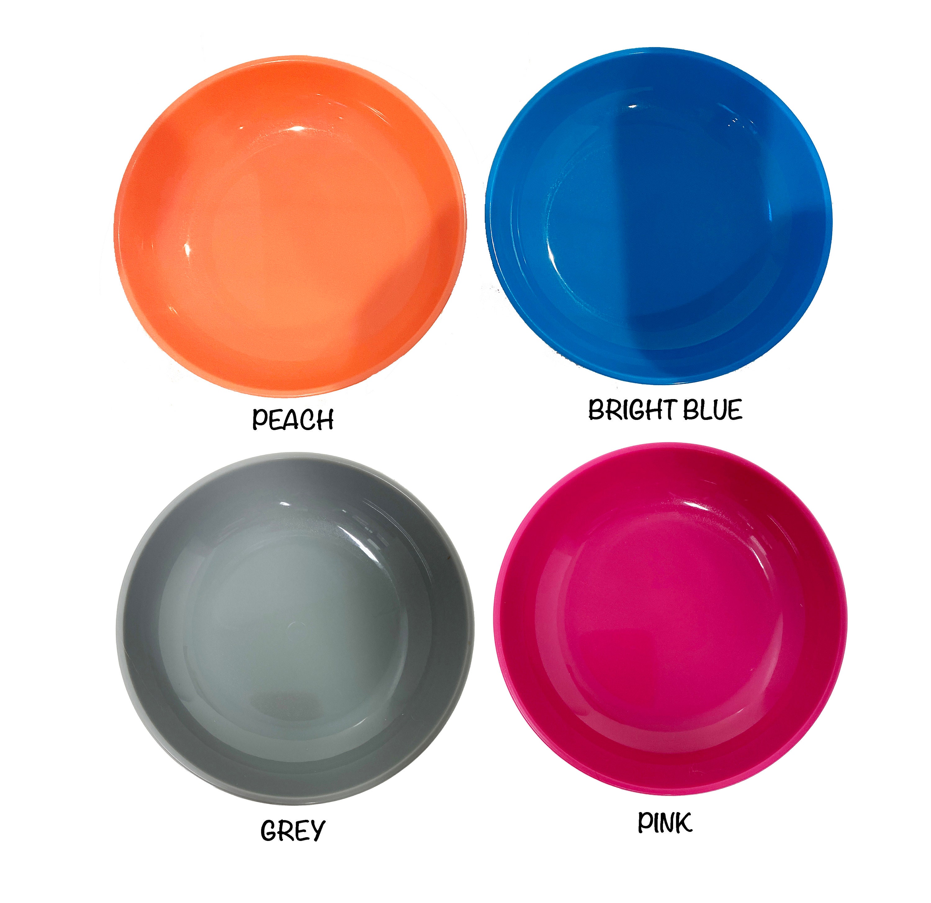 Plastic Non-Slip Cat Bowls are great for eating on hard surfaces. Their non-slip base keeps them in place and helps prevent food spills. Each 5.125x1.5-in. bowl comes in your choice of Bright Pink, Grey, Peach, and Bright Blue Great for both kittens and full-sized cats. The bowls are made with a thick sturdy plastic with the name being a permanent vinyl decal.
