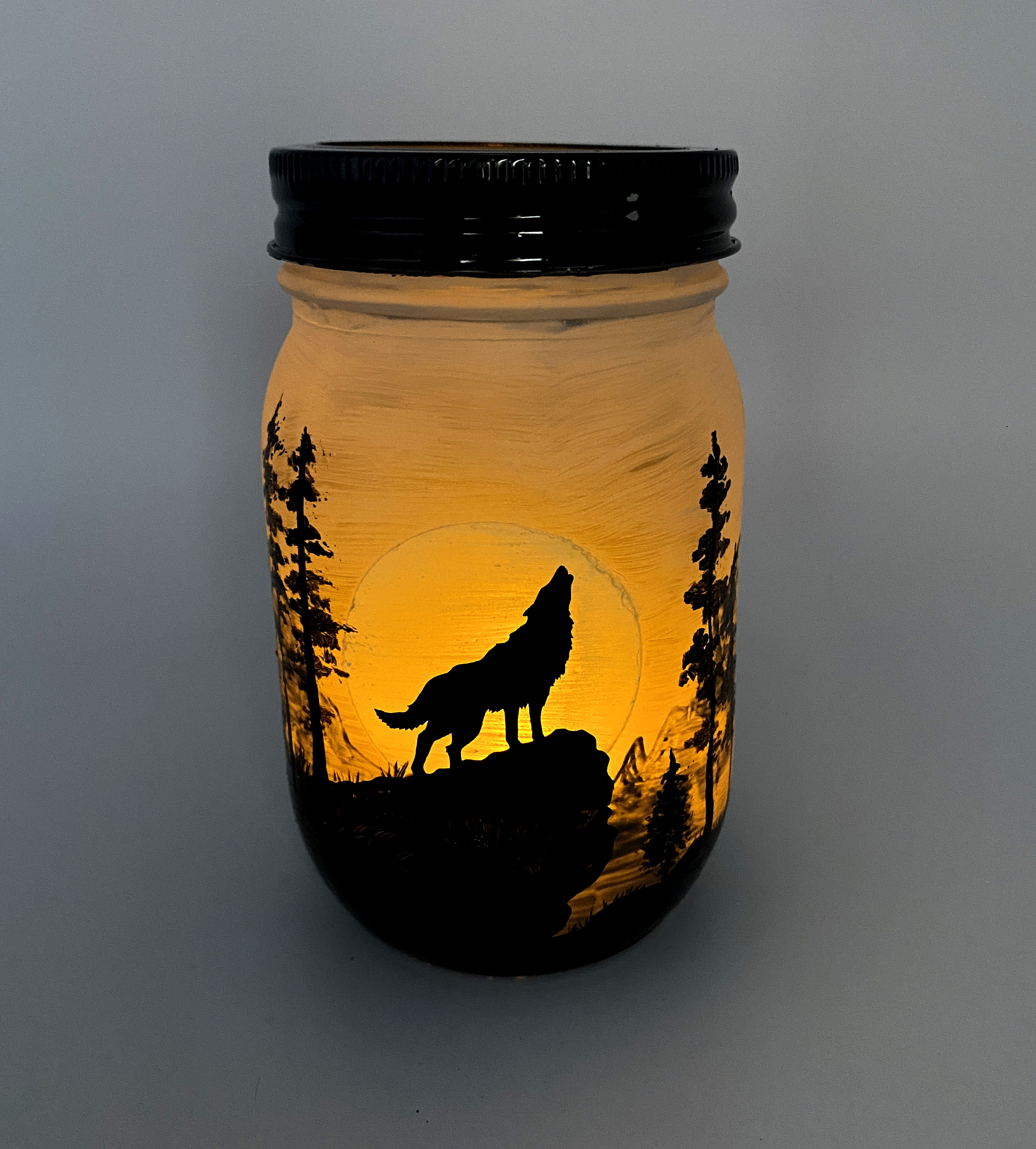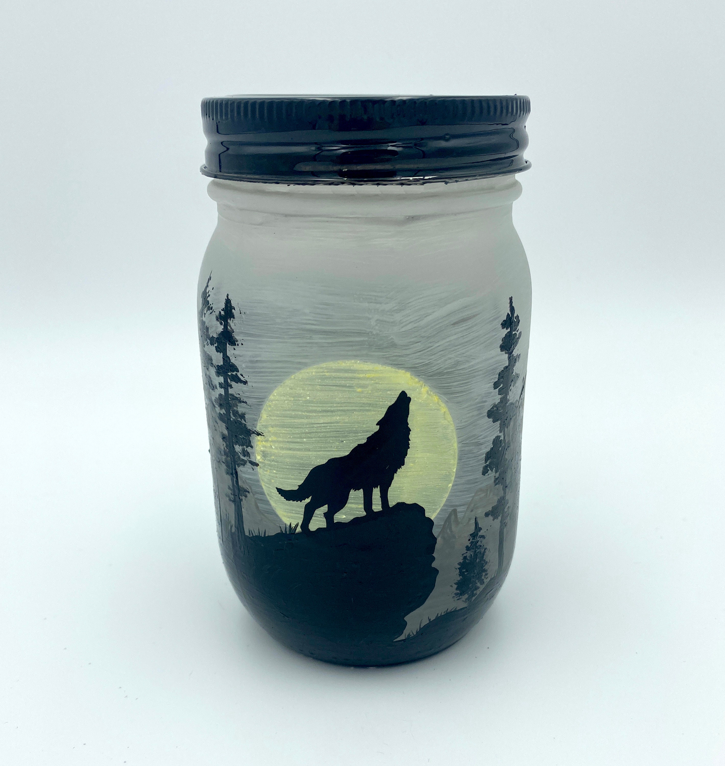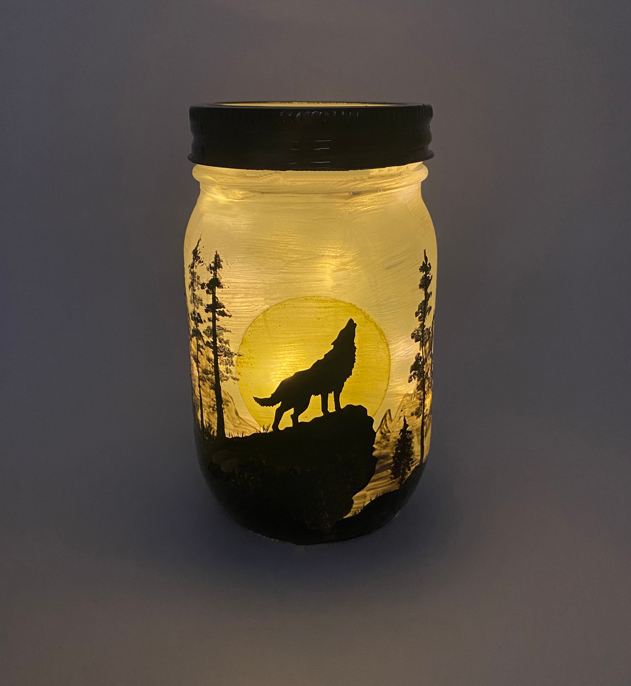 This lantern features a wolf at night time howling at the moon. Create an instant ambience in any room with this elegant lantern. Comes with a flameless LED flickering tea light candle for 100+ hours of light-time. Also looks great with a string of fairy lights.