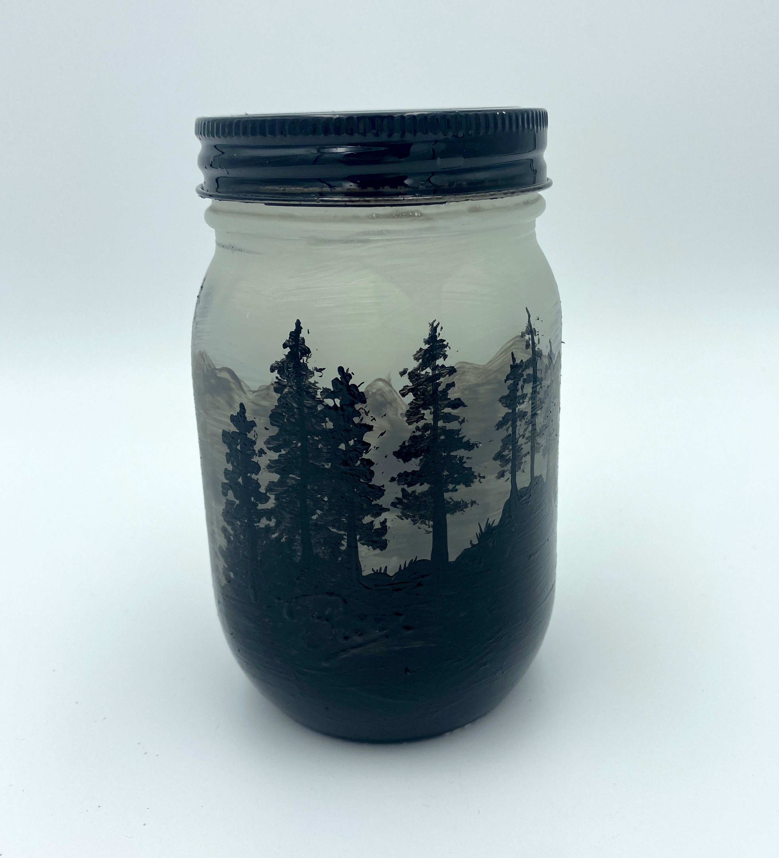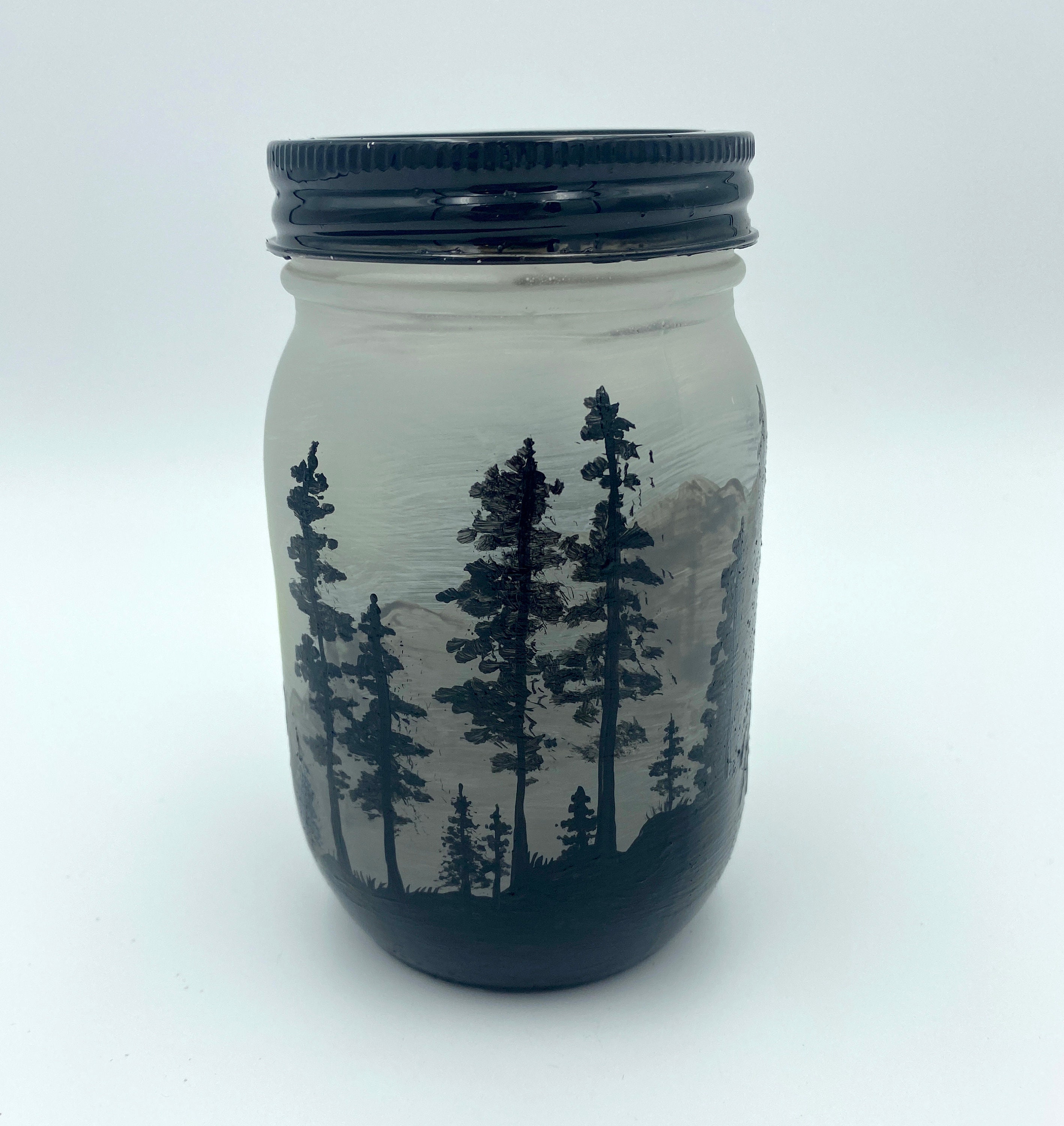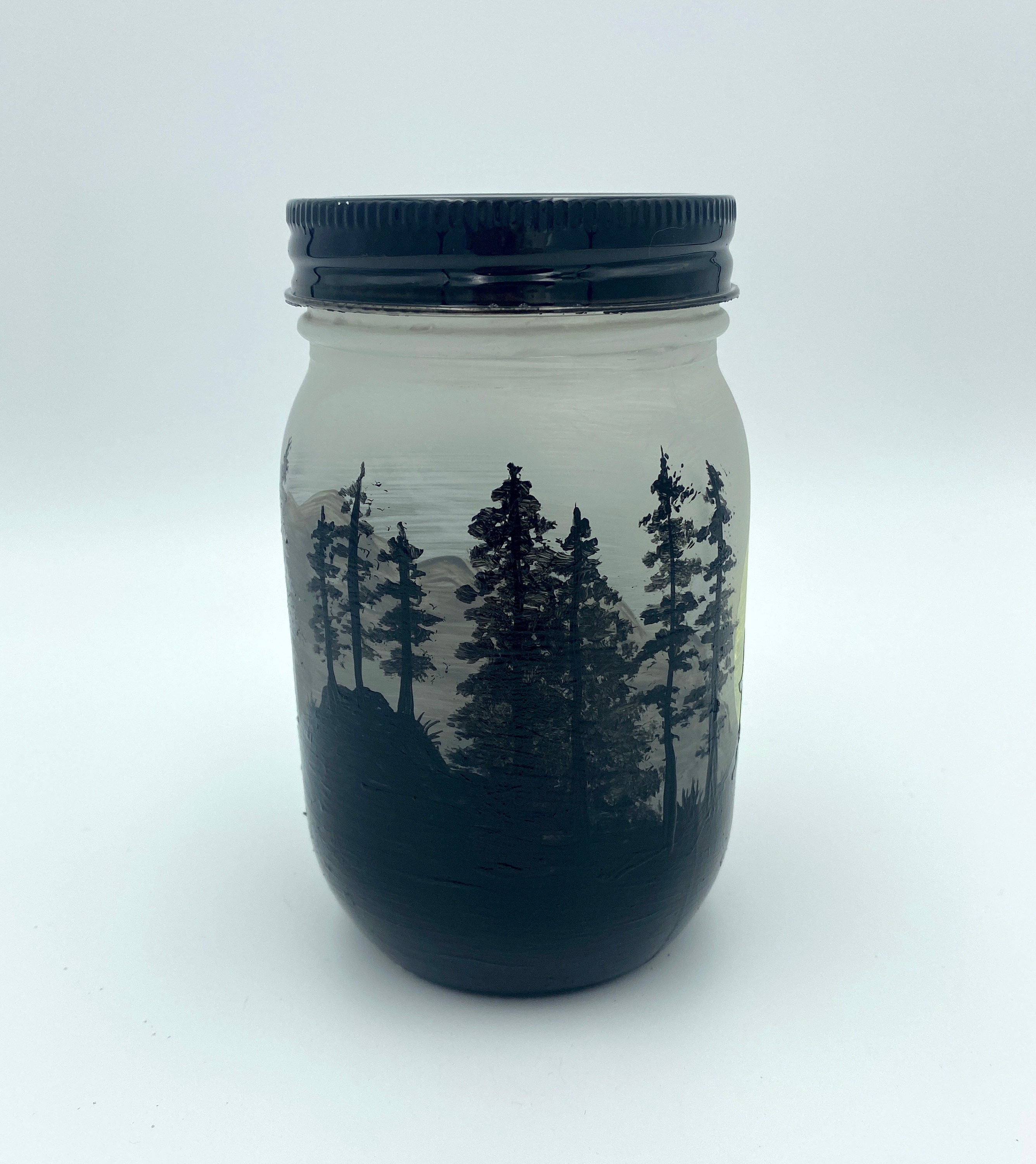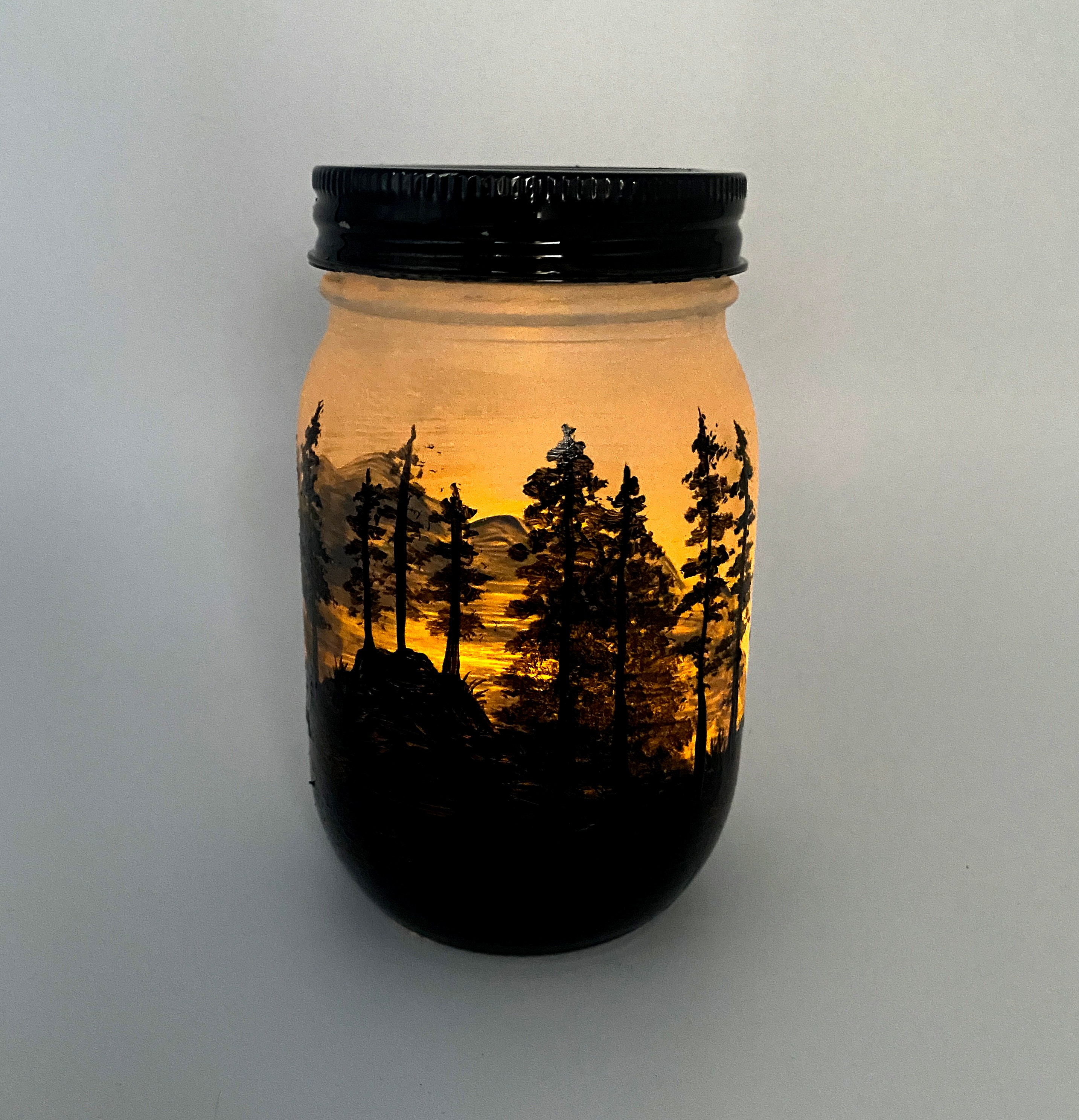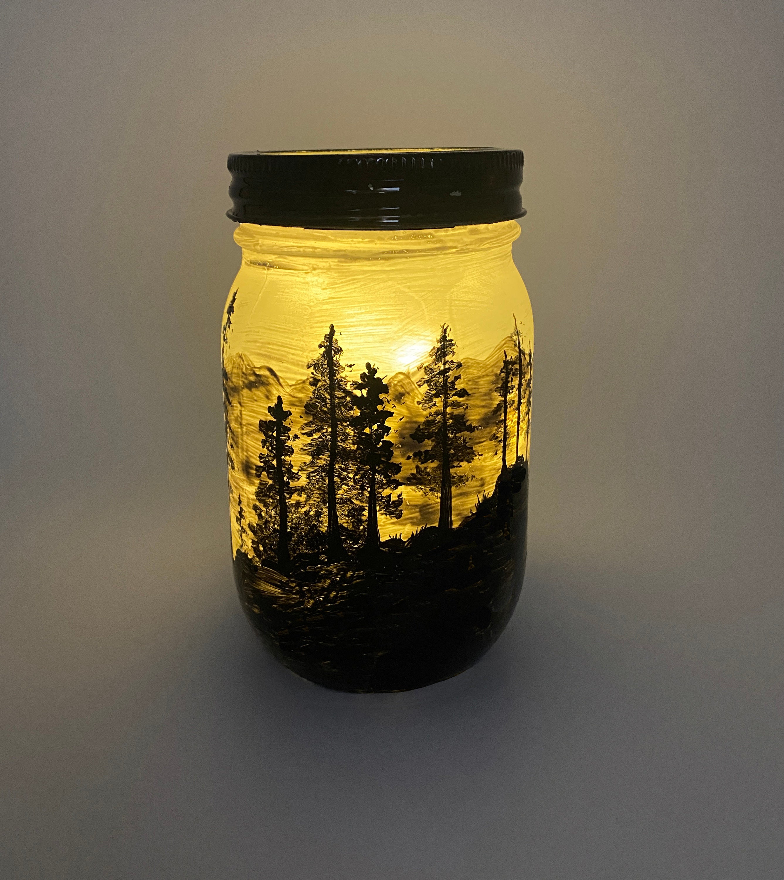This lantern was made with a 1 pint glass mason jar and decorated with paint and vinyl.