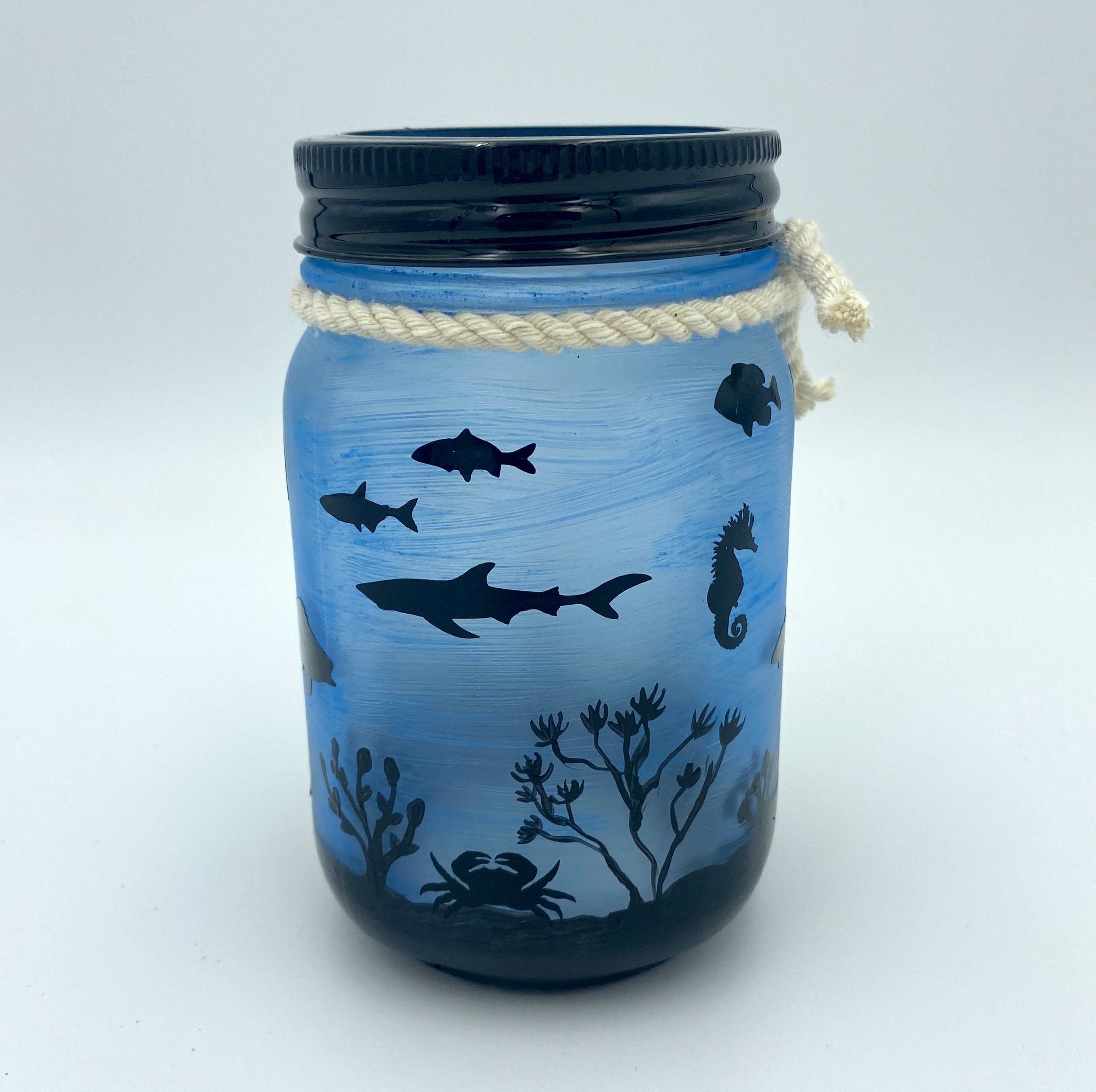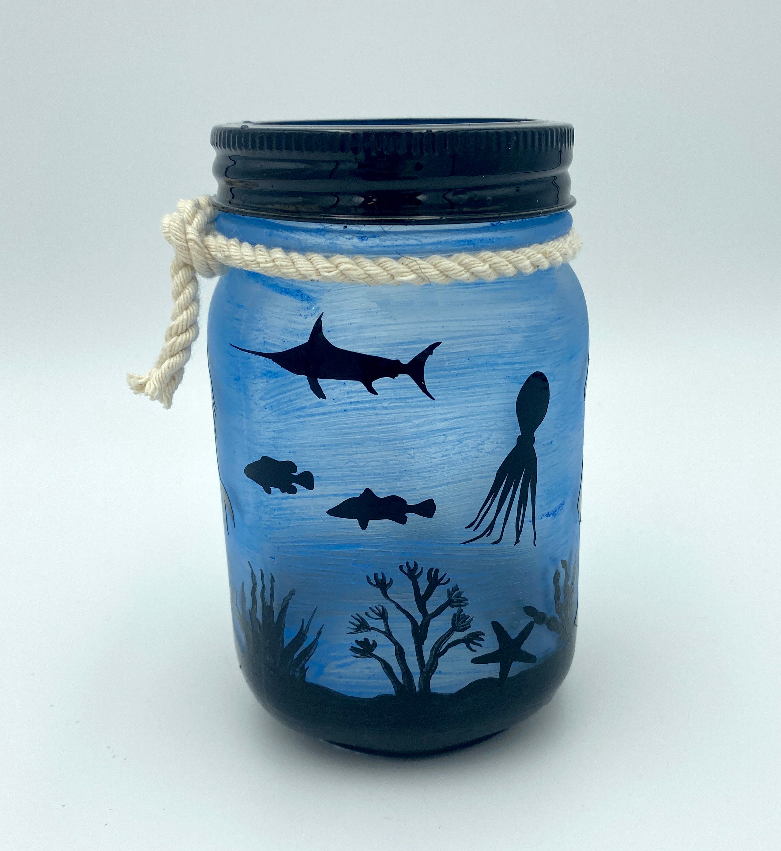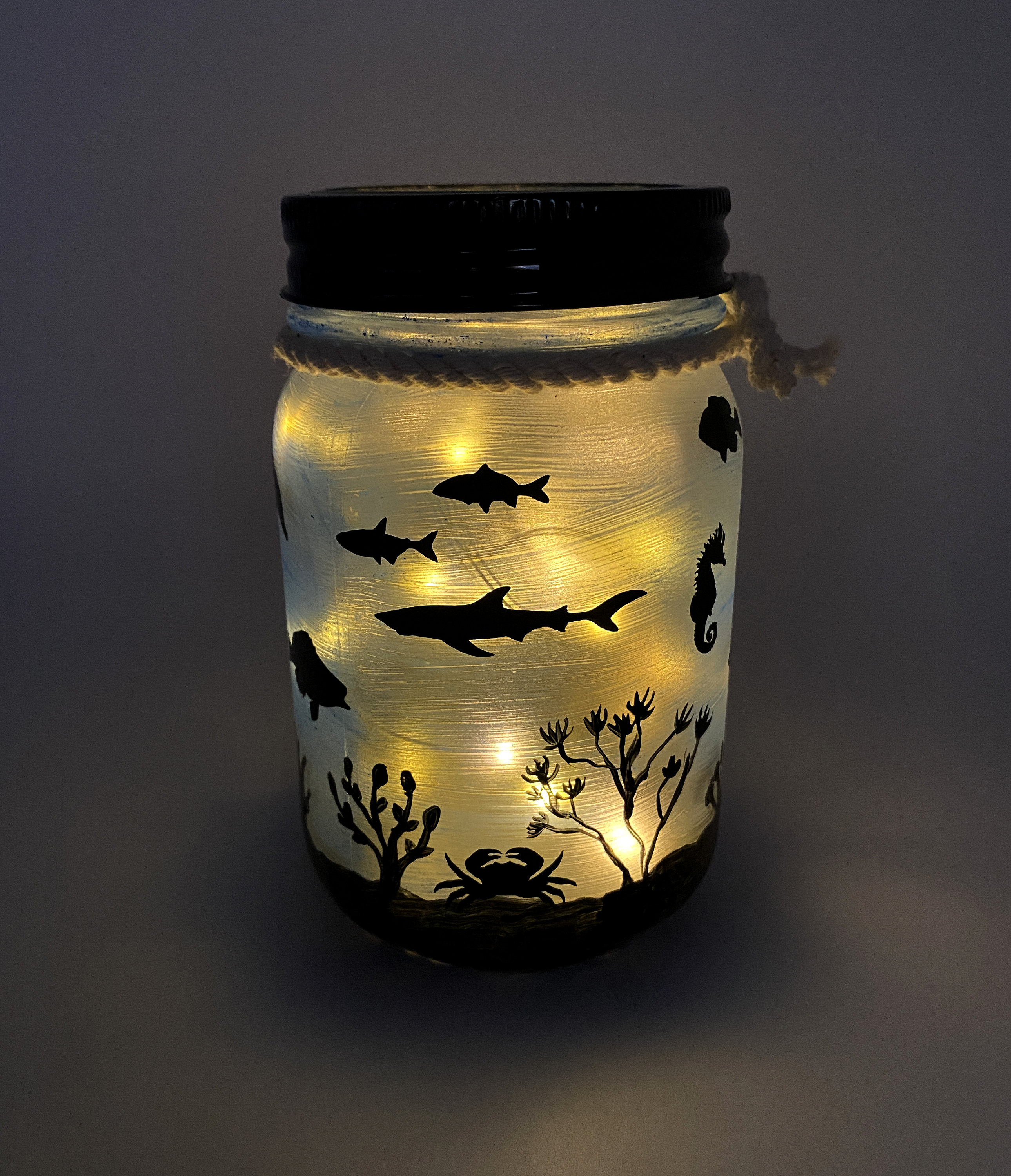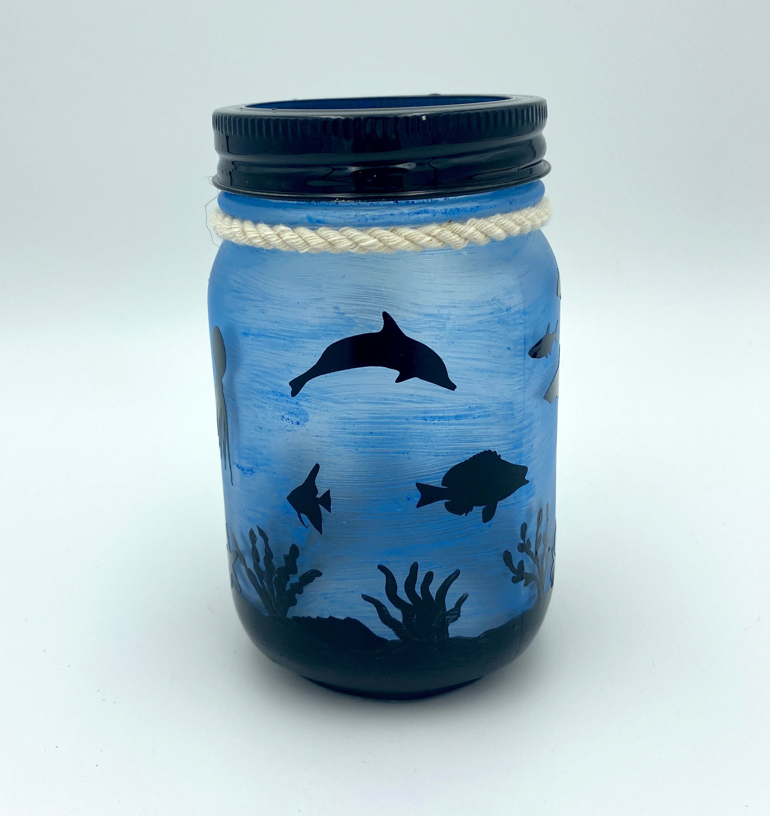 This lantern was made with a 1 pint glass mason jar and decorated with paint and vinyl.