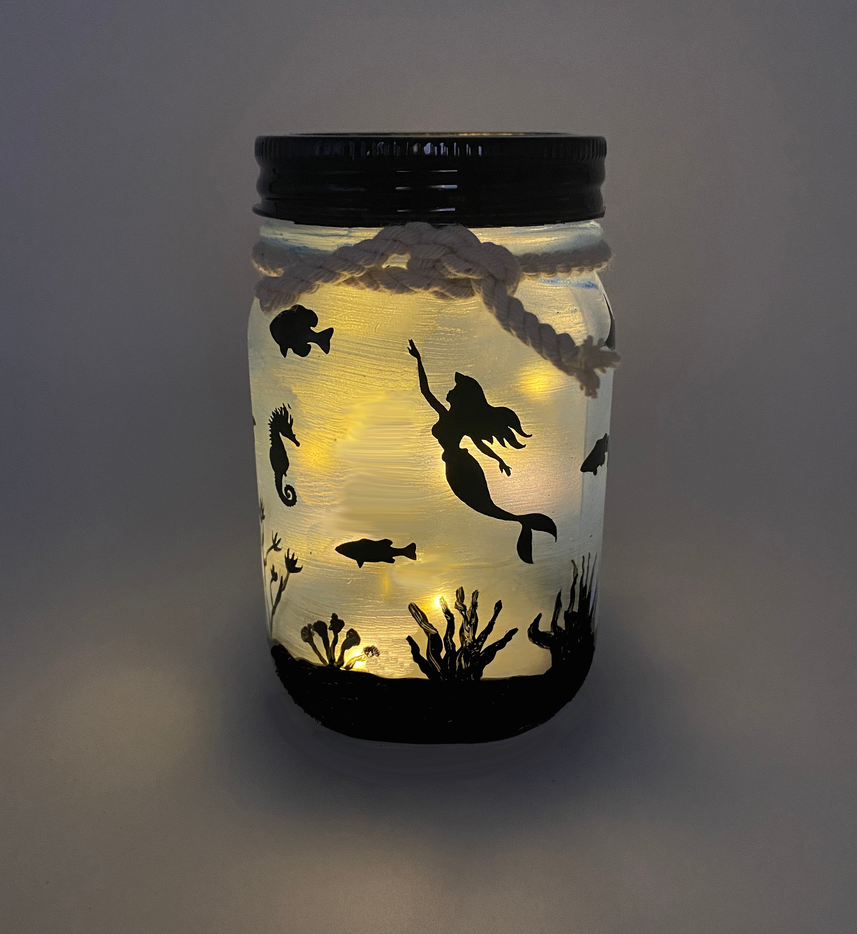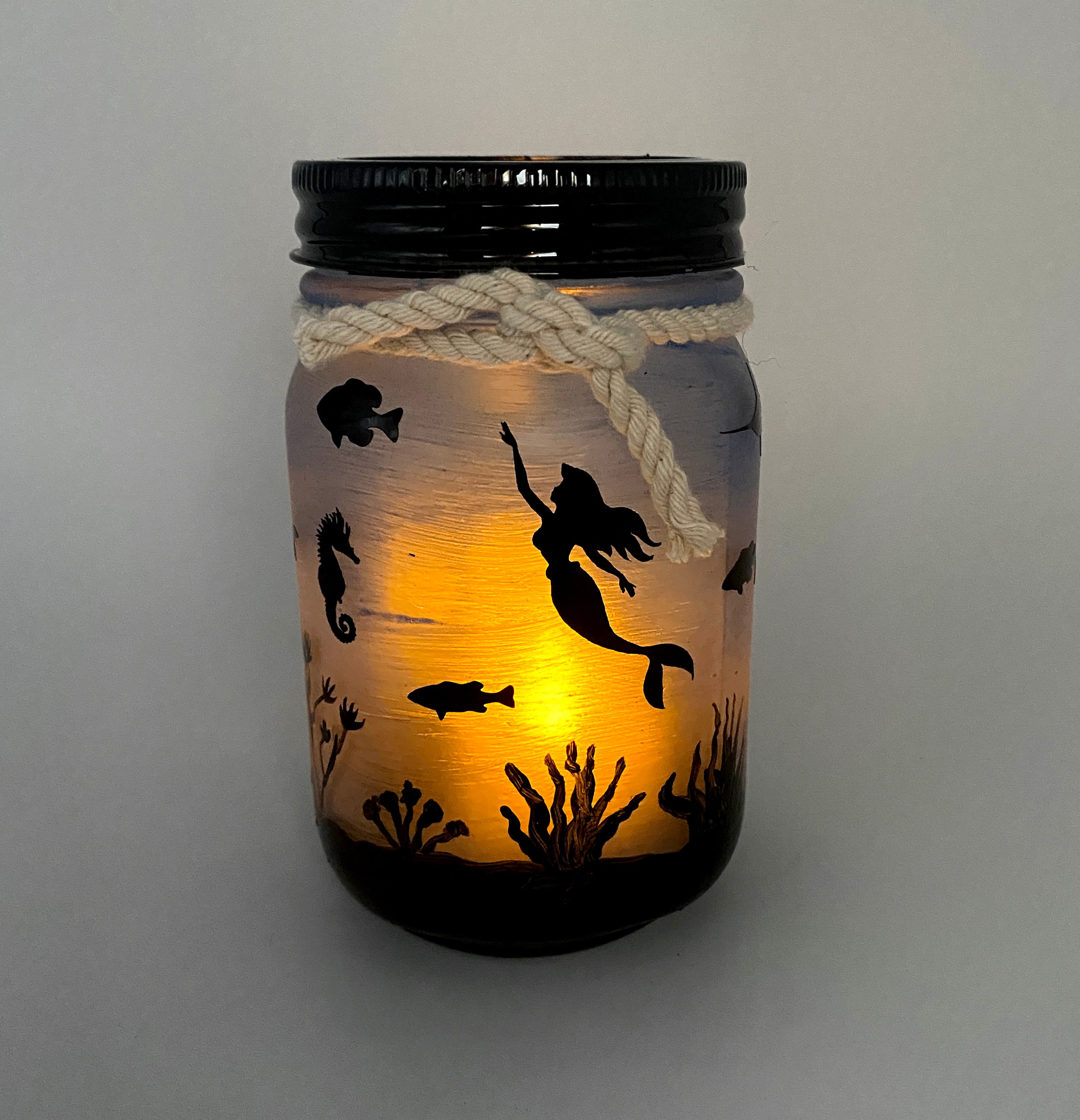 Who wouldn't like one of these pretty lanterns featuring a mermaid and other under the sea life. Create an instant ambience in any room with this elegant lantern. Comes with a flameless LED flickering tea light candle for 100+ hours of light-time. Also looks great with a string of fairy lights.