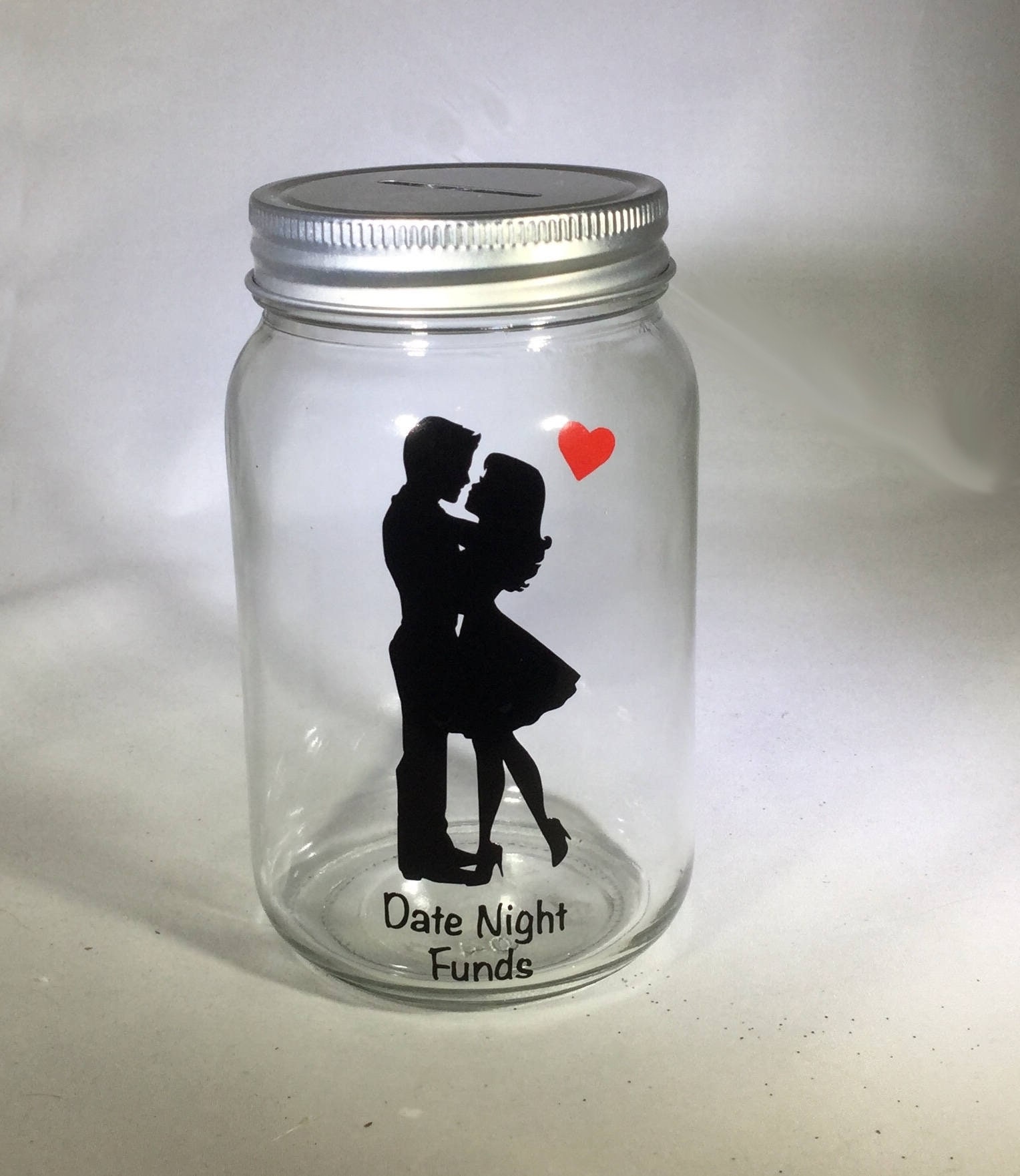 This mason jar bank would be a great place to put away some extra money for that special night out.