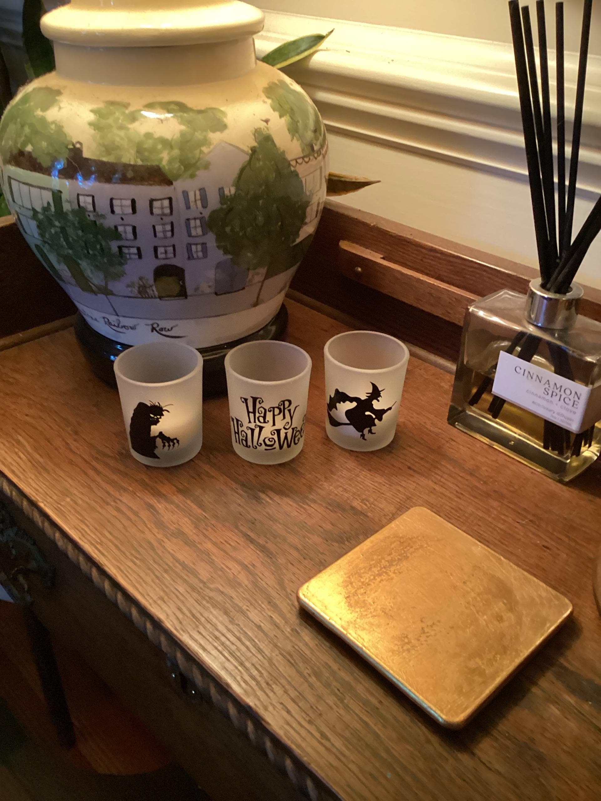 These 2" x 2.5" extra thick premium quality glass votive feature vinyl Halloween silhouettes. Your choice frosted (as pictures) or clear glass votives.