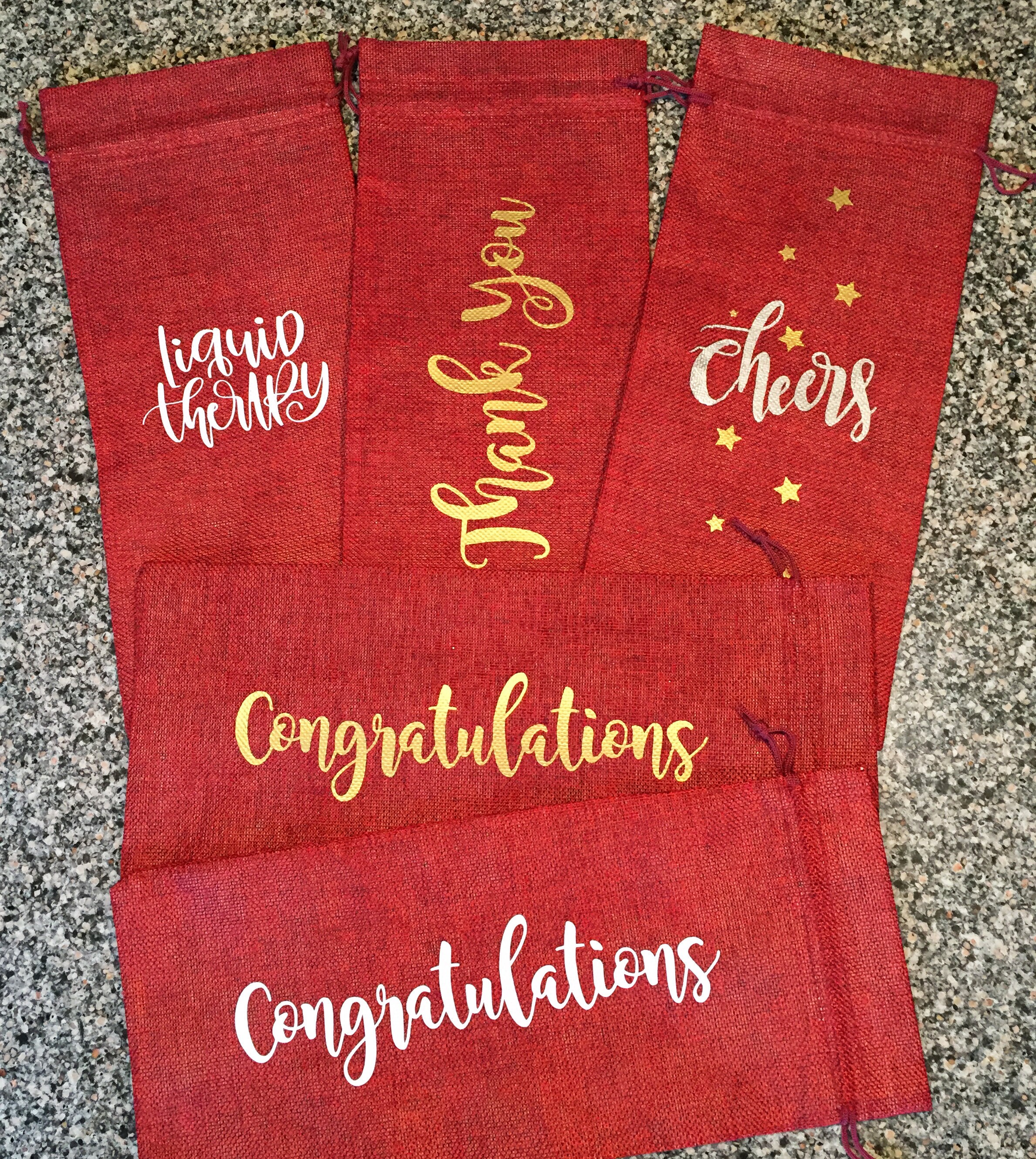 These wine burlap bags are perfect for gifting a bottle of wine or other similarly shaped item. Packaging is everything and these personalized wine bottle bags will make your gift look EXTRA special.