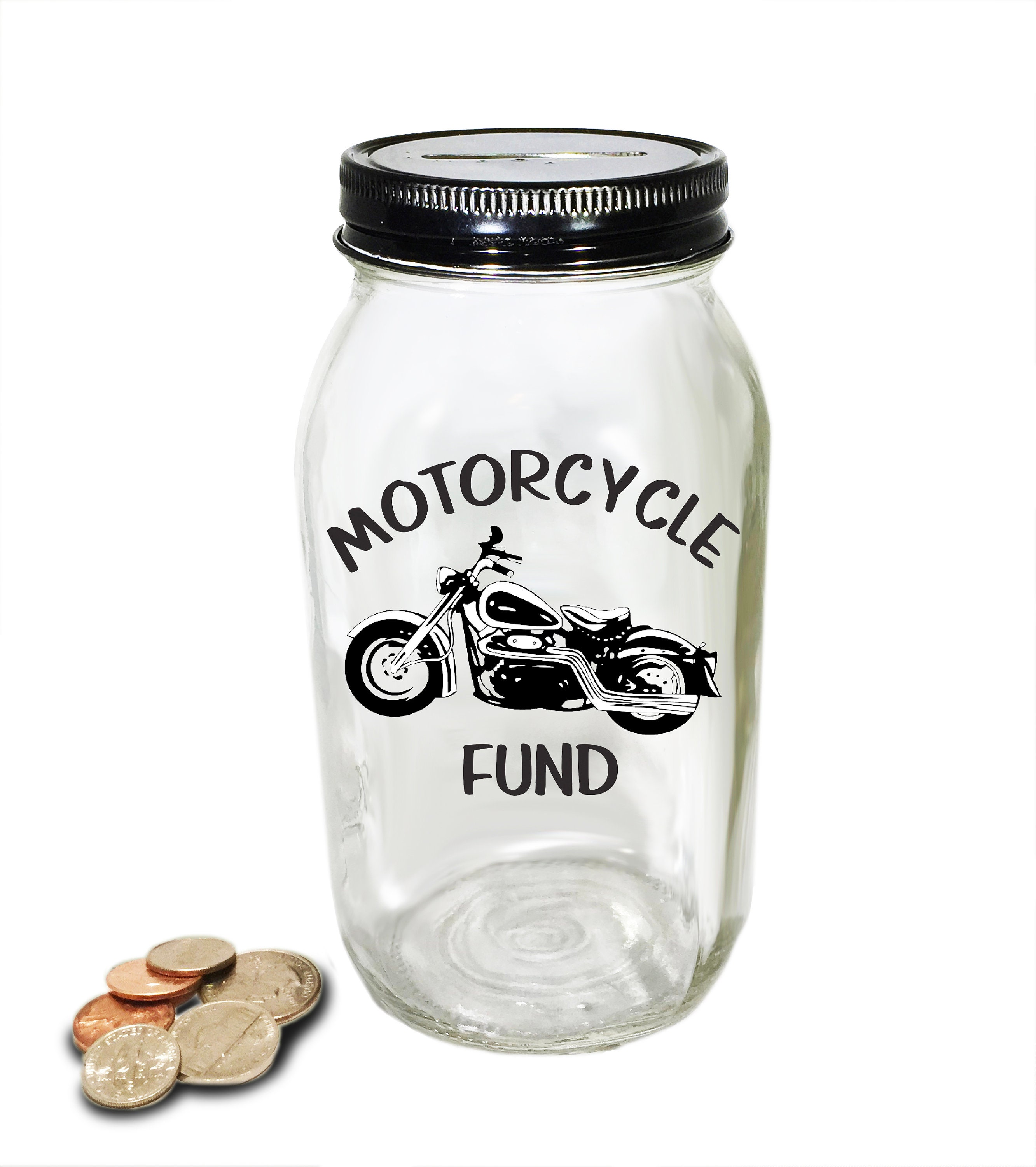 This mason jar would make a great gift or a convenient place to put your own money aside. The lid has a slot for money and the back can be personalized at no additional cost.