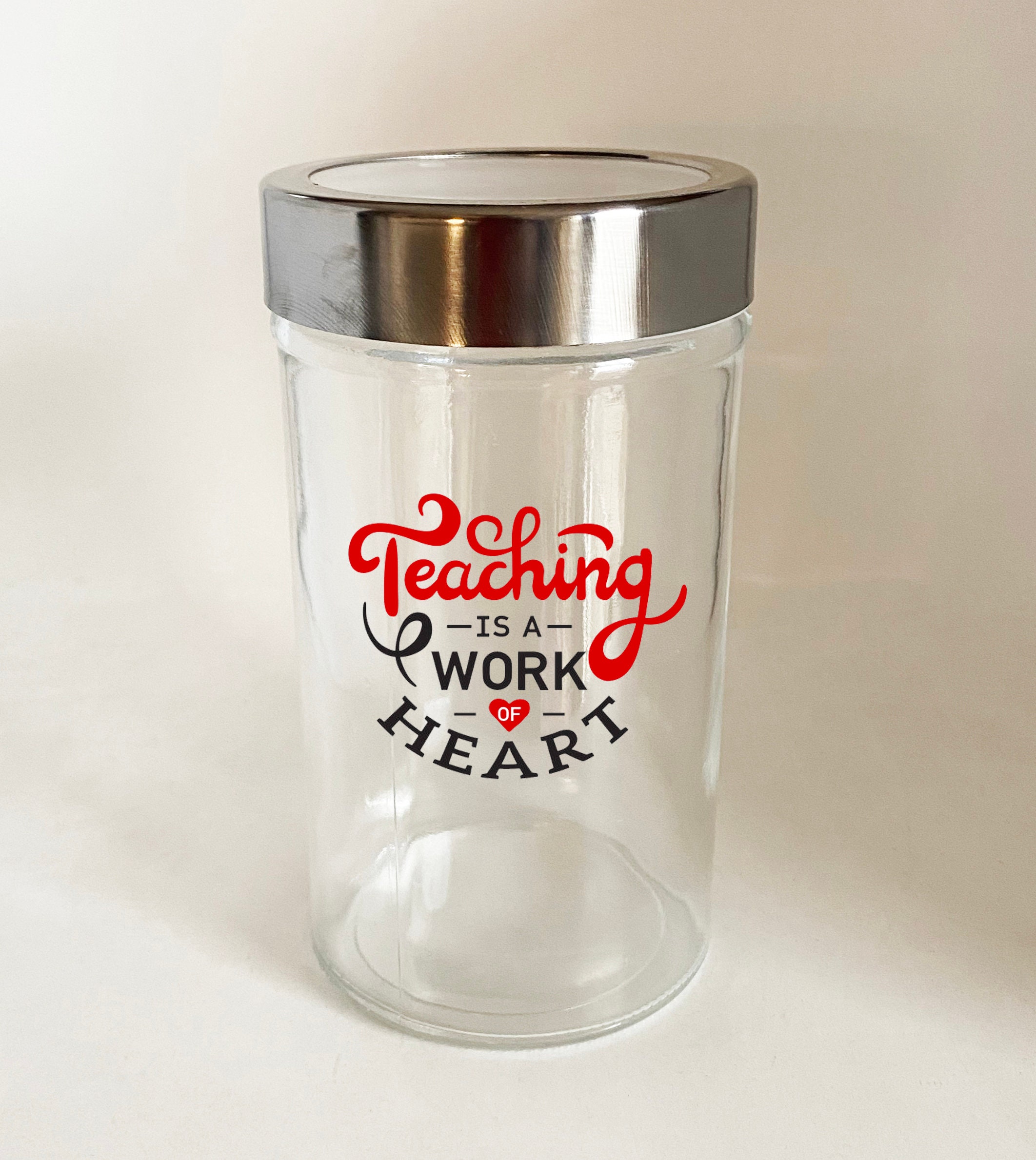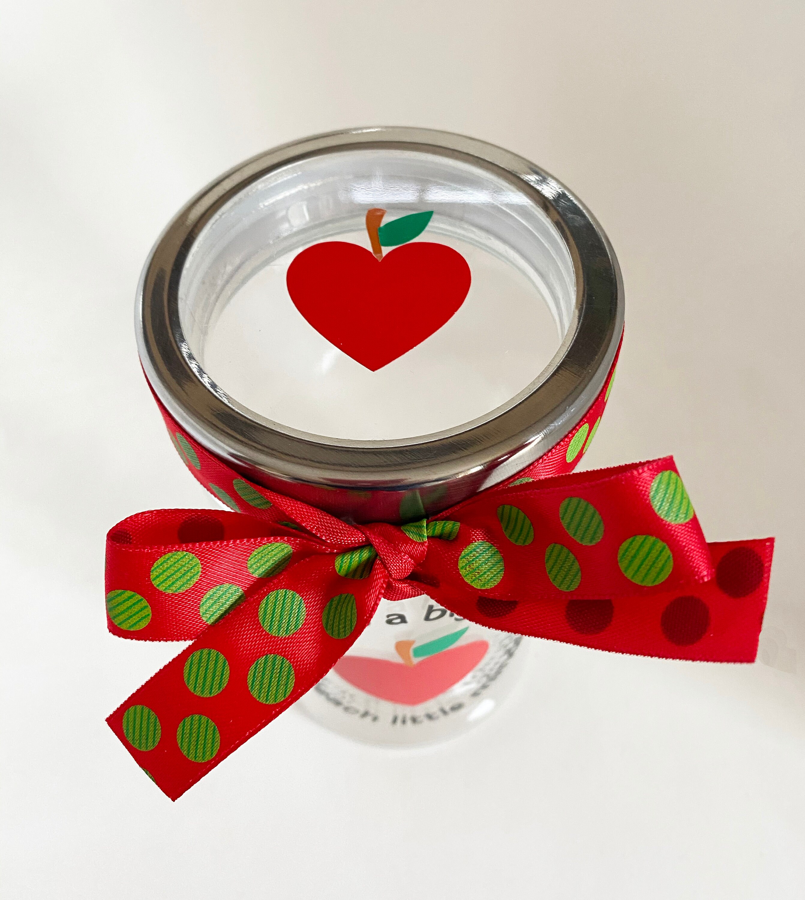 This contemporary glass jar would make a great gift for that special teacher. They can be filled with just about anything, candy, gift cards, etc. And best of all the jars can be reused. Jars come gift boxed